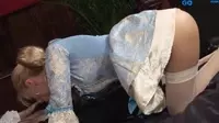 In a dimlylit room filled with seductive laces and frilled delights, a blonde couple finds themselves wrapped in passion.The dolllike womans outfit teases the imagination with its lace and frill adornments, leaving little to the imagination.As their bodies intertwine, the guy fondles her delicate features with excitement building up within them both.Her fingering of his dick is done gently yet firmly, hinting at their shared eagerness for whats about to come.Naked and nude in front of each other, the couple indulges in a world filled with erotic delights.Their bodies dance in a mesmerizing harmony, highlighting the beauty of sex.The woman, with her blonde hair cascading down her back like silk, is a true delight to behold.She pouts her ass, or buns, which accentuate her tempting derriere.Her man watches, enthralled by her captivating aura, as he admires the alluring sight of his woman.Her body, covered in seductive laces, radiates an air of mystery.Her labia and clit are concealed under this delicate fabric, adding to the tantalizing anticipation of what awaits him underneath.As she bends over, presenting her buttocks and ass for his enjoyment, he cant help but feel a wave of horniness wash over him.His fingers trace intricate patterns on the curve of her buns, eliciting moans that only encourage their lustfilled endeavors.He positions himself behind her, his dick seeking entrance into her wet and inviting pussy.Their bodies lock into place, creating a vision of blissful union.The mans cock sinks deep within her, evoking passionate cries that fill the room with raw animalistic desire.The guys cock fills the woman to capacity as she rides him, her tight pussy enveloping it completely.Their bodies intertwine once again as they fuck passionately, exploring each other in an endless dance of lust and pleasure.Their lovemaking is an art form, with her cunt squeezing his dick to a point where he feels himself on the verge of climaxing.However, their insatiable appetites are not yet satisfied they crave more, needing each other like never before.The man goes down on the woman, licking her clit and fingering her pussy while she sucks his dick passionately.Their oral fixations reach a boiling point, culminating in an intense blowjob that sends shivers down their spines.Their shared climax is euphoric, leaving them breathless and completely drained of energy.As they lay there, basking in the afterglow of their passionfilled escapades, both are thankful for this moment filled with seductive laces and frilled delights.Theyve experienced the ultimate pleasure and are eager to dive back into it, once again exploring the thrilling depths of their uninhibited lovemaking.