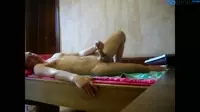 In a dimly lit room, the scene starts with a muscular guy lying on his back, completely naked, his welltoned torso glistening in the pale light.He is alone and masturbating furiously, his hand gripping tightly around his rigid erection while his other hand holds onto the sides of the bed for support.The sight of him, horny and desperate for release, creates a voyeuristic pleasure that the viewers cannot resist.His cock, standing at full attention, seems to call out for a handjob something he hasnt experienced in quite some time.As if answering this primal need, a beautiful woman with long flowing hair appears next to him, her naked body glistening just as much as his own.Her soft hands wrap around his dick, the sensation overwhelming him even more than before.The camera focuses on her fingers as she skillfully strokes his shaft while simultaneously playing with his balls.Every movement she makes brings him closer and closer to climax, leaving nothing but anticipation in its wake.As her lips approach his cockhead, the atmosphere becomes unbearably hot, tension rising like lava.Her tongue snakes out to taste him, sending shivers down his spine and electrifying his veins.Her ass spreads wide open, inviting him into a world of ecstasy that would leave him breathless if only he could muster the strength to look away from her mouth engulfing his cock.The room fills with the sound of his ragged breathing and the wet, sloppy sounds of her oral sex.As the moment reaches its peak, he grabs the back of her head, his hand digging into her naked skin as he pulls her closer, desperate for the release that she promises him.Her eyes lock on his, their gazes meeting in a heated dance of wanton pleasure and lust.Just as hes about to cum, she releases her grip, sliding down his body until her ass is poised above his face, offering a new kind of selfpleasure the promise of a shared orgasm.He raises one hand, guiding it between her wet folds, eagerly sliding two fingers inside her as she impales herself on him, moaning in unison with his groans of delight.As their climax nears, she looks down at him with a seductive smile, the picture of dominance and desire, the embodiment of his selfmasturbation fantasies come to life.Their bodies writhing together, both fully satisfied yet desperate for more, they bring new meaning to the term self in selfmasturbation.